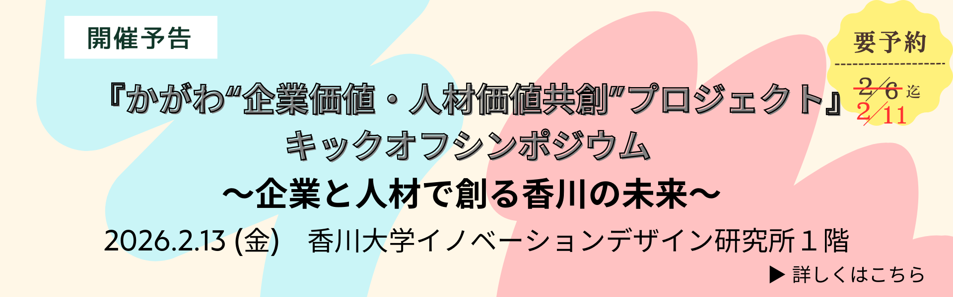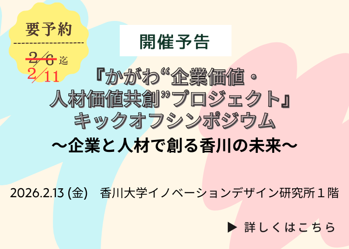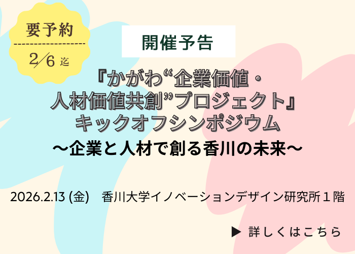 『かがわ“企業価値・人材価値共創”プロジェクト』キックオフシンポジウムを開催します(2.13)
