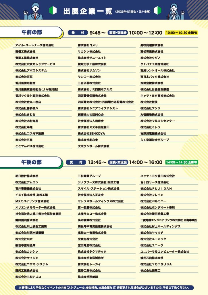 香川県内に事業所がある企業 100社(午前・午後の部 各50社)