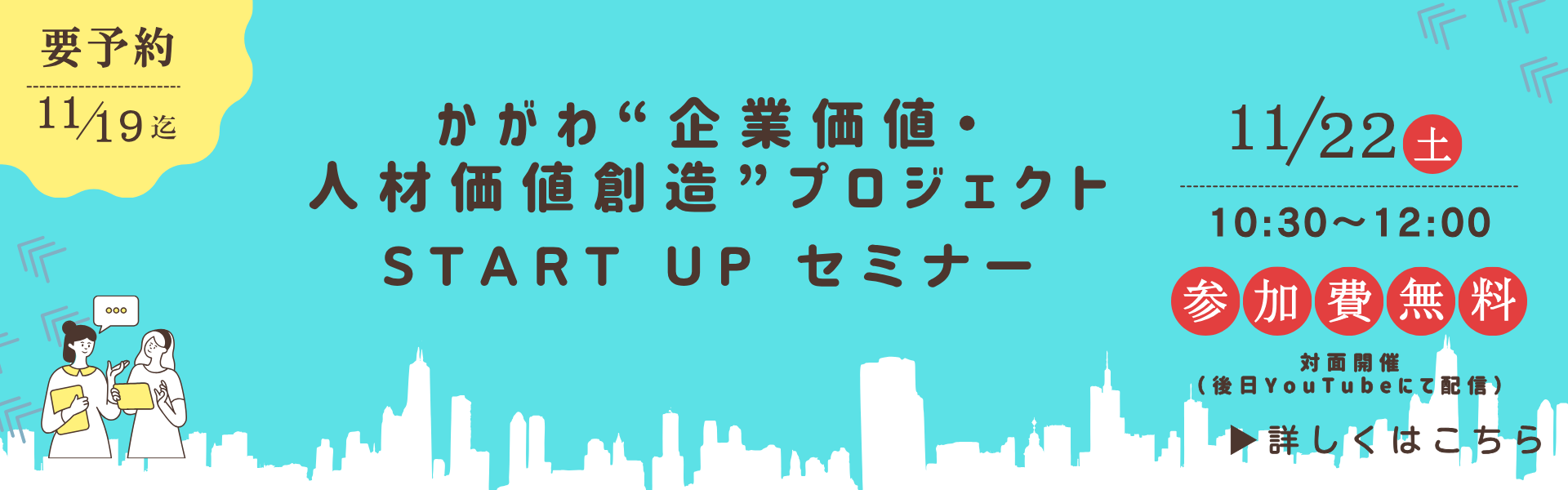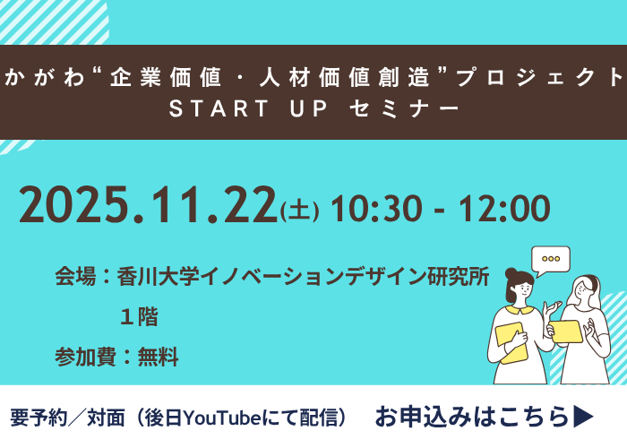 「かがわ“企業価値・人材価値創造”プロジェクト START UP セミナー」を開催します(11.22)
